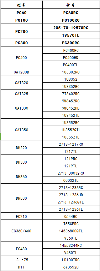 產(chǎn)品型號(hào)列表: